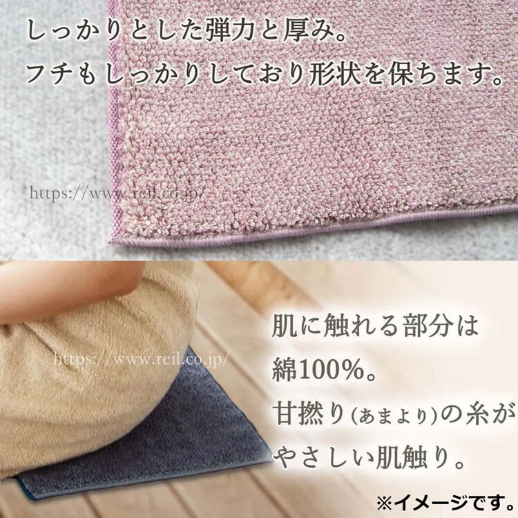 ●肌に触れる部分は綿100%。甘撚り(あまより)の糸がやさしい肌触り。
