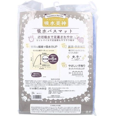 フワモコマルシェ 吸水美神 吸水バスマット 約40×55cm ブルー (1枚入)