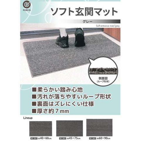 LIV PLUS 玄関マット 屋外 ソフト 泥落とし 滑り止め 60×90cm グレー ND-3843 (1個)