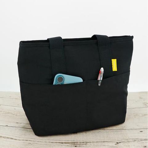 ●小物入れに便利な外側ポケット2つ付き。内面ポケット付きで、保冷剤を入れて保冷力を上げるとこが可能。