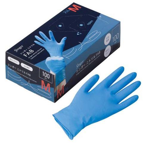 宇都宮製作 Singer ニトリル ゴム手袋 使い捨て 青 M FAB NBR0453PF-BBM (100枚入)