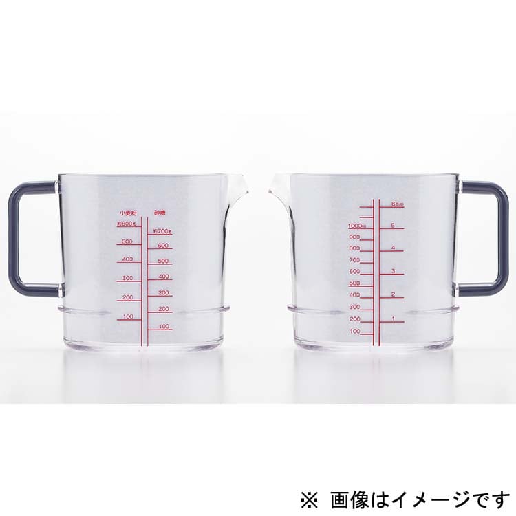 | 容量:1L(1000cc) 最大目盛:砂糖約700g・小麦粉約600g・米約6カップ・水1200cc 最小目盛:砂糖約100g・小麦粉約100g・米1カップ・水100cc 耐熱温度:140度(電子レンジ・食洗機使用可能) 包装形態:箱入 材質:ポリカーボネイト樹脂 |