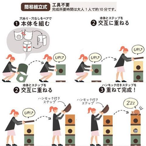 ●(完成サイズ)直径約40.5cm(連結部含まず)×高さ110cm(重量)3.7kg(耐荷重)全体:約15kg/ステップ一枚:約7kg/ハンモック:約7kg