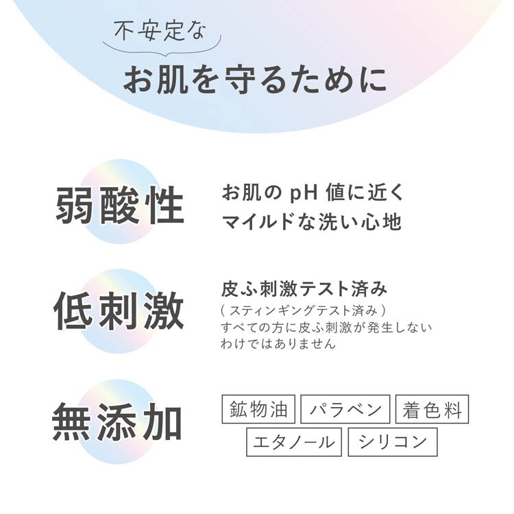 お肌のpH値に近くマイルドな洗い心地の弱酸性石鹸で、敏感なお肌を守りながら洗います。