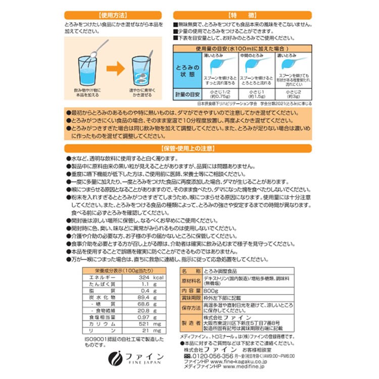 ●本品は、汁物や飲み物に混ぜるだけでとろみをつけることができるとろみ調整食品です。