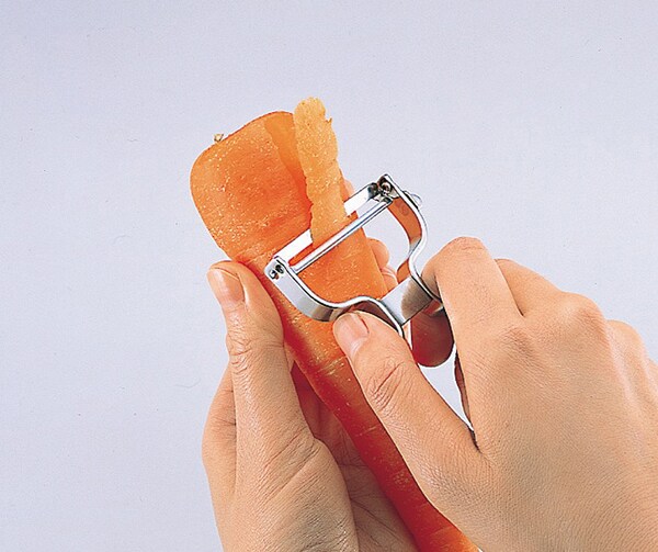 ●回転式ストレート刃で人参やきゅうりなど野菜の表面にそって刃がフィットしてきれいに切れます。