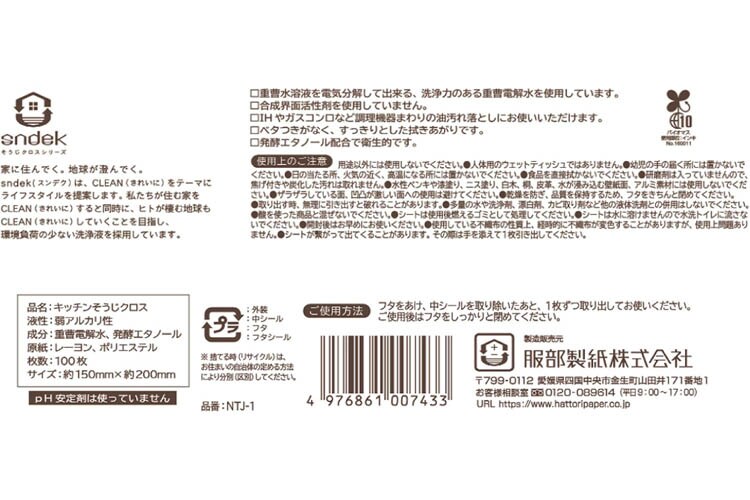 服部製紙 掃除シート 重曹 電解水 キッチン用 (100枚)