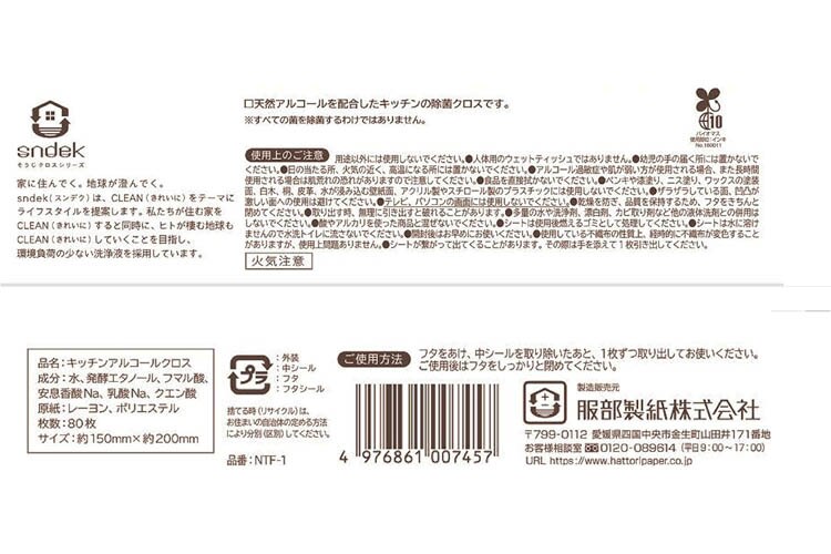【服部製紙 掃除シート 除菌 アルコール キッチン用の商品詳細】