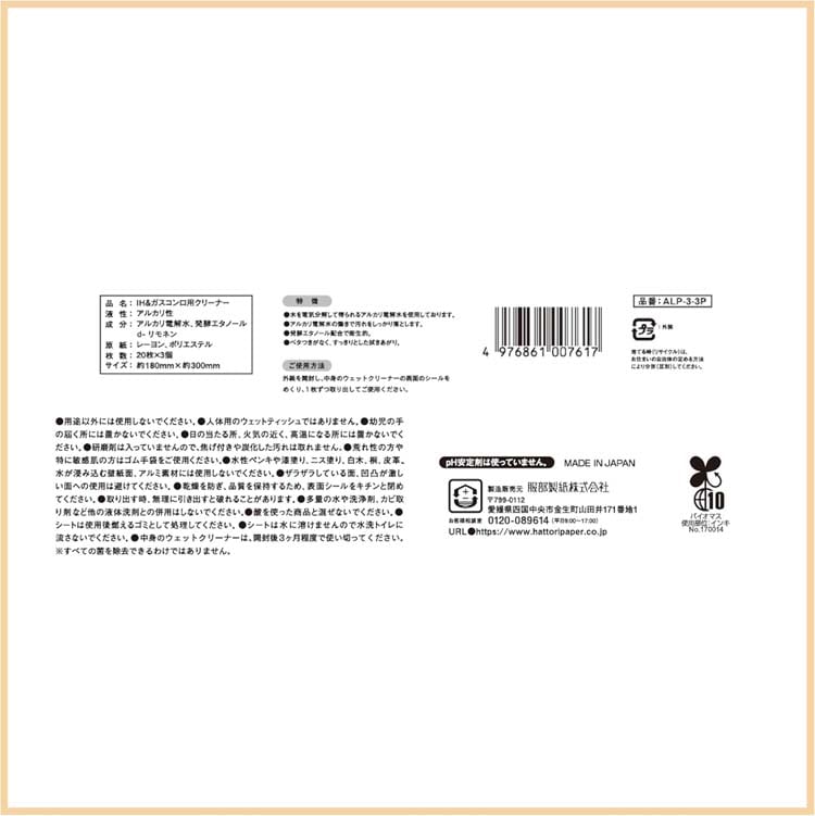 【服部製紙 ウェットシート いつもの アルカリ電解水 IH&ガスコンロ拭き ALP-3-3Pの商品詳細】