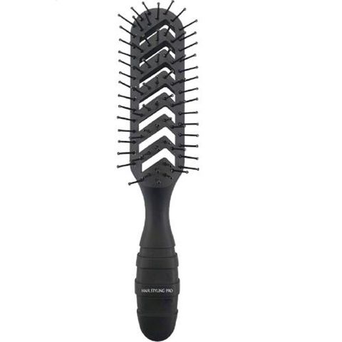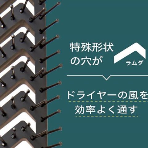 ●ドライヤーの風を効率良く通す形状のブローホールを採用し、ブラシ毛先端部分は頭皮に優し先玉加工を施したベントブラシです。