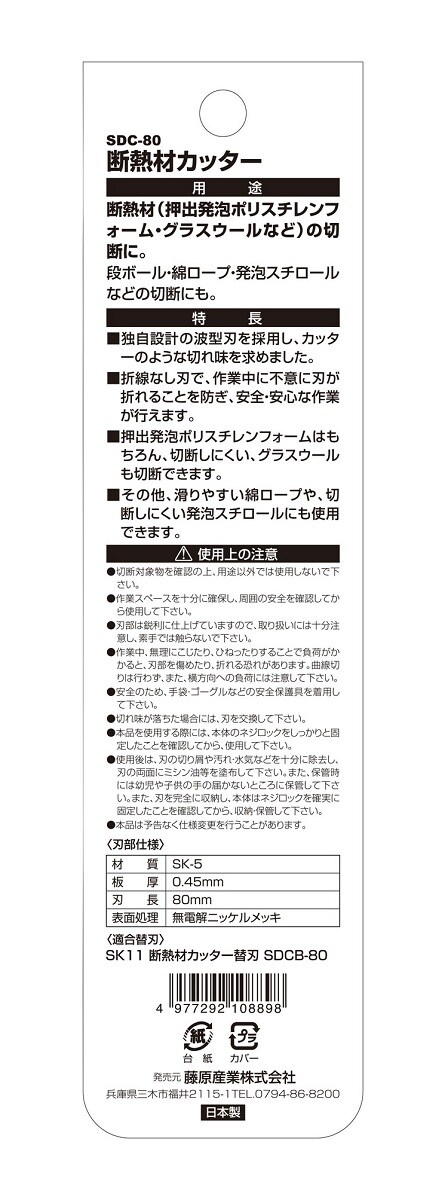 【SK11 断熱材カッター SDC-80の商品詳細】