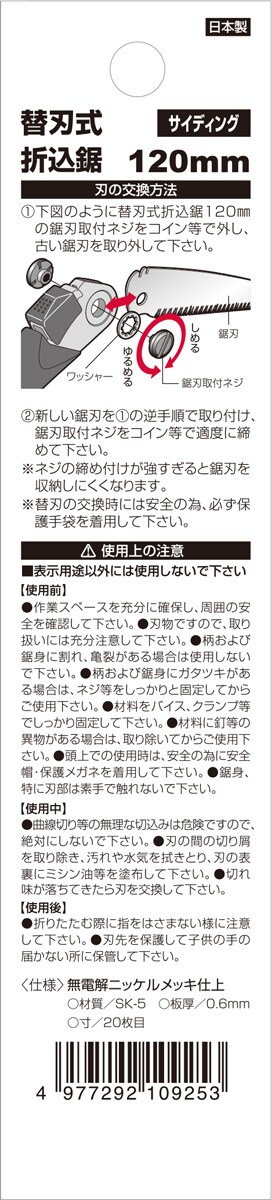 SK11 替刃式 折込鋸 サイディング替 SB120-S (1枚)