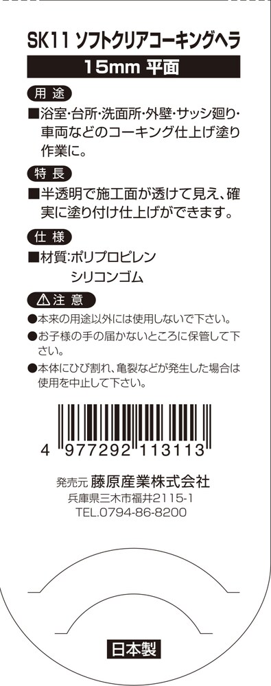 藤原産業 SK11 ソフトクリアコーキングヘラ 平面 15mm シリコン (1本)