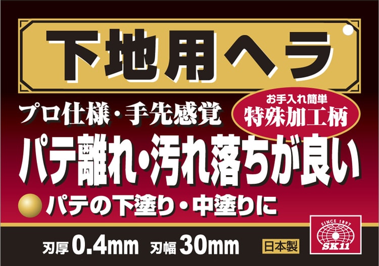 SK11 下地用ヘラ ステンレス 30mm 0.4mm (1本)