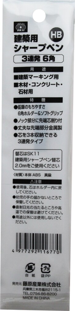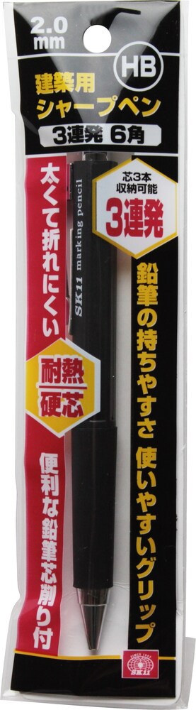 SK11 建築用シャープペン 3連発 6角 HB 2.0mm (1本)