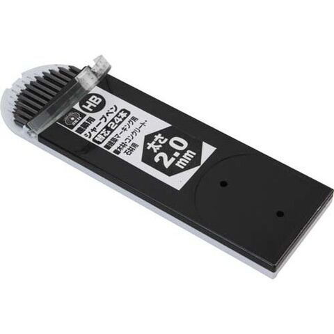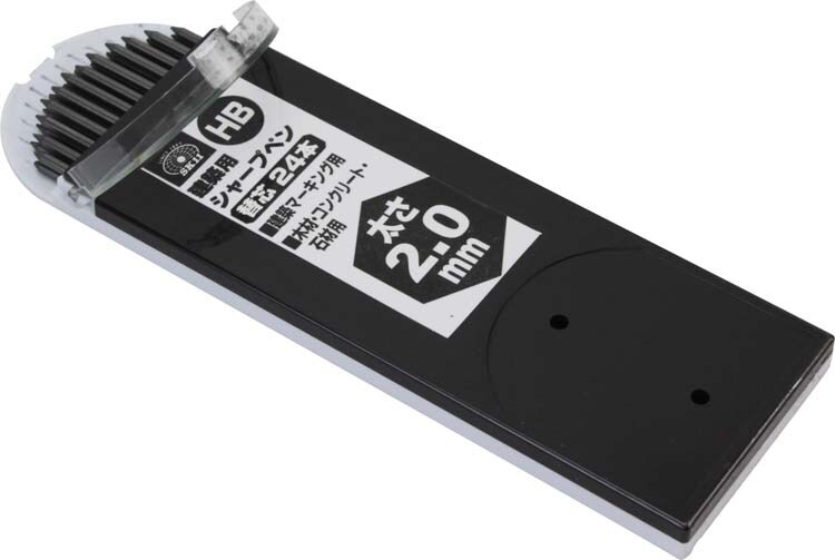 色:黒(HB)。芯太さ:2.0mm。入数:24本。適合本体:SK11建築用シャープペン3連発・ショート。(材質)本体:黒鉛。ケース:ABS。