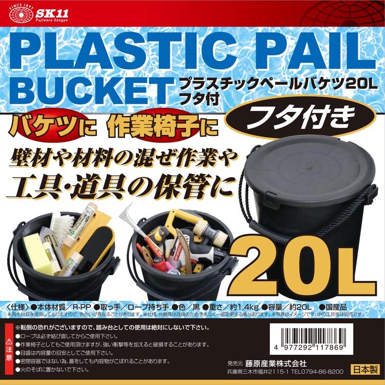 藤原産業 SK11 プラスチックペールバケツ 20L フタ付き (1個入)