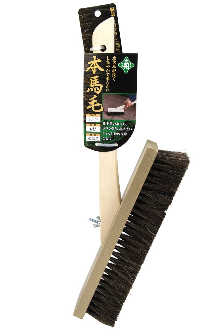 【緑長 左官ブラシ ゴマ本馬毛 1丁半 6行 柄付きの商品詳細】