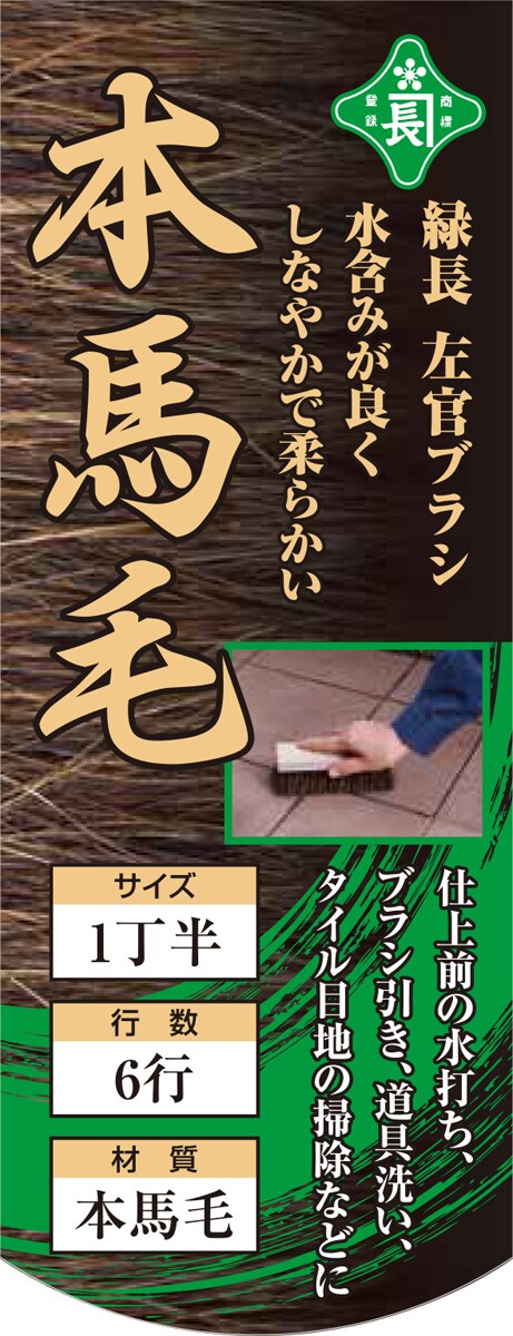 【緑長 左官ブラシ ゴマ本馬毛 1丁半 6行 柄なしの商品詳細】