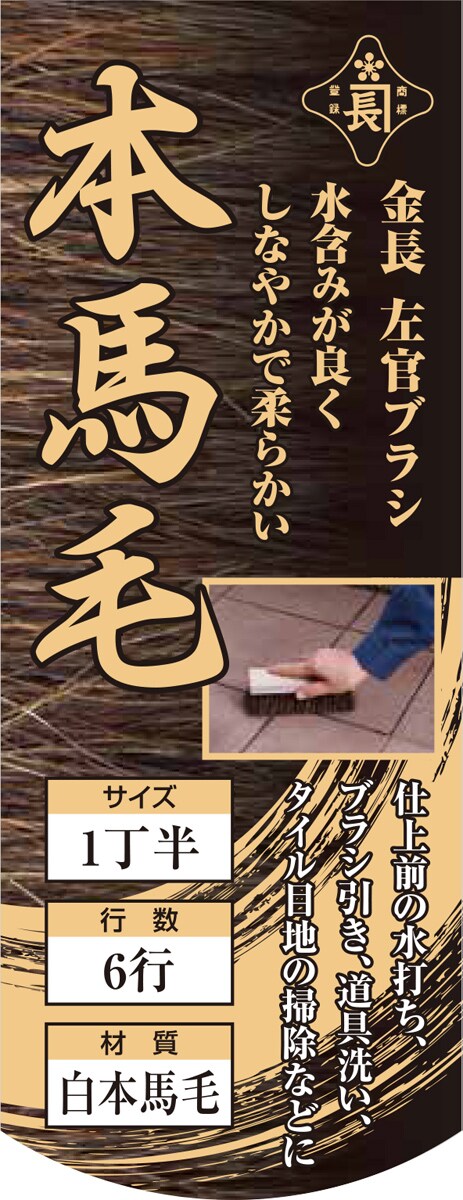 【金長 左官ブラシ 白本馬毛 1丁半 6行 柄なしの商品詳細】
