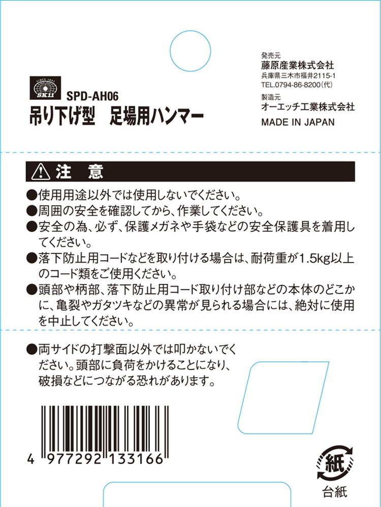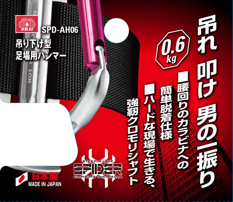 【藤原産業 SK11 SPIDER 吊下げ型 足場用ハンマー 0.6kg SPD-AH06の商品詳細】