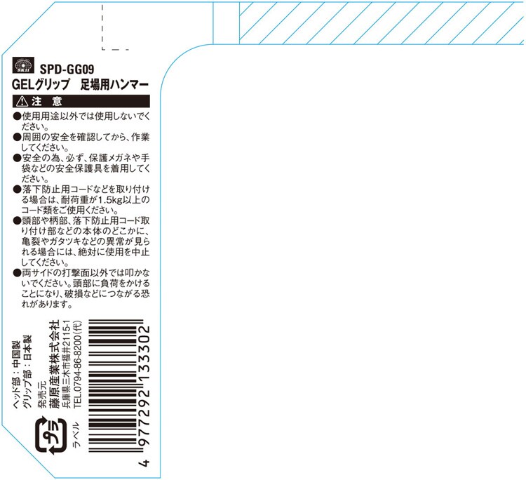 SK11 SPIDER GELグリップ 足場用ハンマー 0.9kg SPD-GG09 (1本)