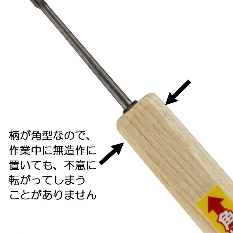 ●柄の元部分を四角に加工してあるため、転がりにくくなっています。
