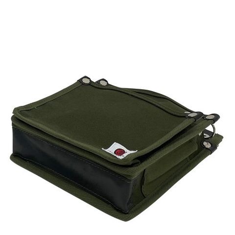 サイズ:幅195×高さ270×奥行き85mm。重量:310g。カラー:国防。60mm幅ベルトまで対応。(材質)6号帆布。