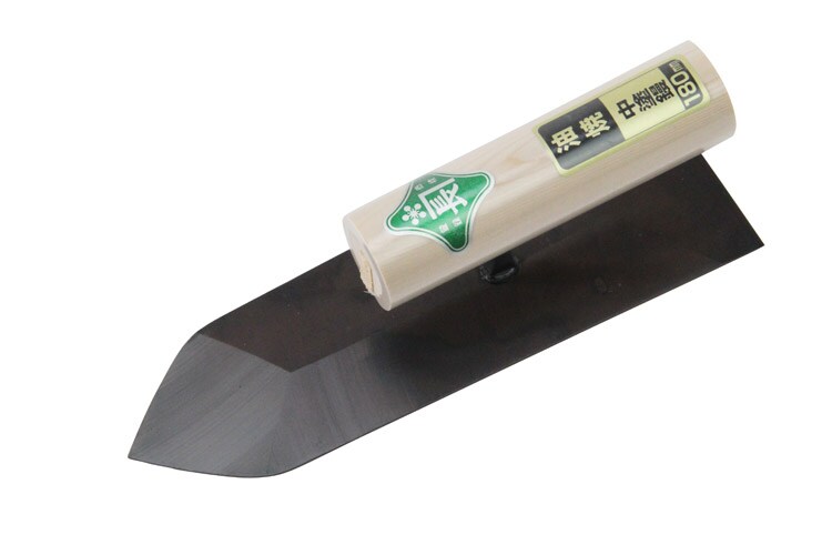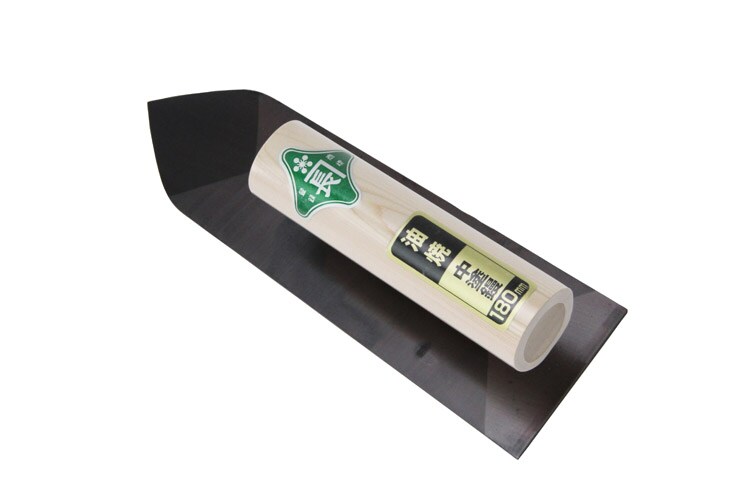 | サイズ:180mm。パッケージ:ビニールサック入り。油焼き加工処理。(材質)鏝刃部:鉄材。柄部:木。 |