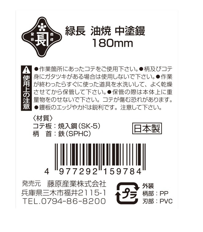 緑長 油焼 中塗鏝 180mm (1本)