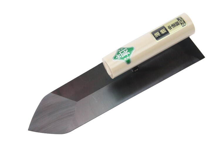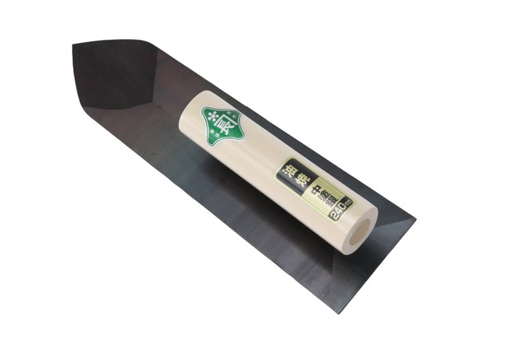 | サイズ:240mm。パッケージ:ビニールサック入り。油焼き加工処理。(材質)鏝刃部:鉄材。柄部:木。 |