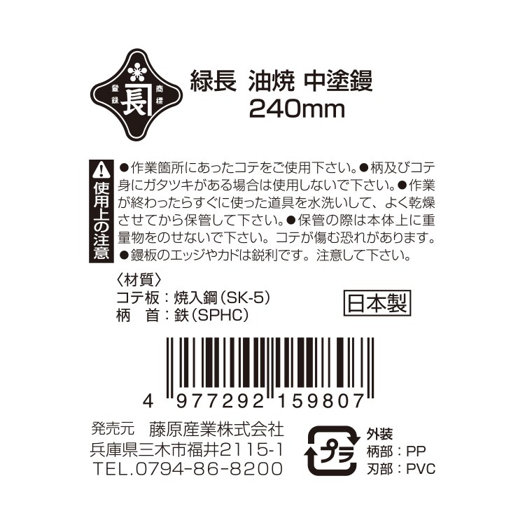 【緑長 油焼 中塗鏝 240mmの商品詳細】