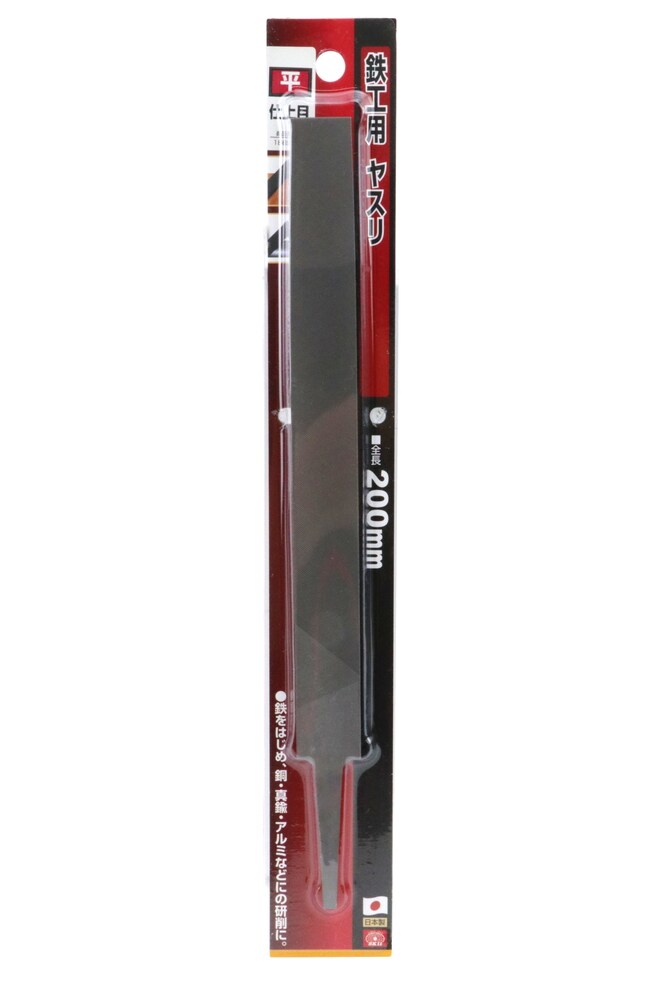 | ・形状:平 ・目の粗さ:細目(仕上目) ・刃長:200mm ・コミ部長さ:約50mm ・刃厚5mm×刃幅21mm ・鉄工用 ・柄なし ・材質:炭素工具鋼 |