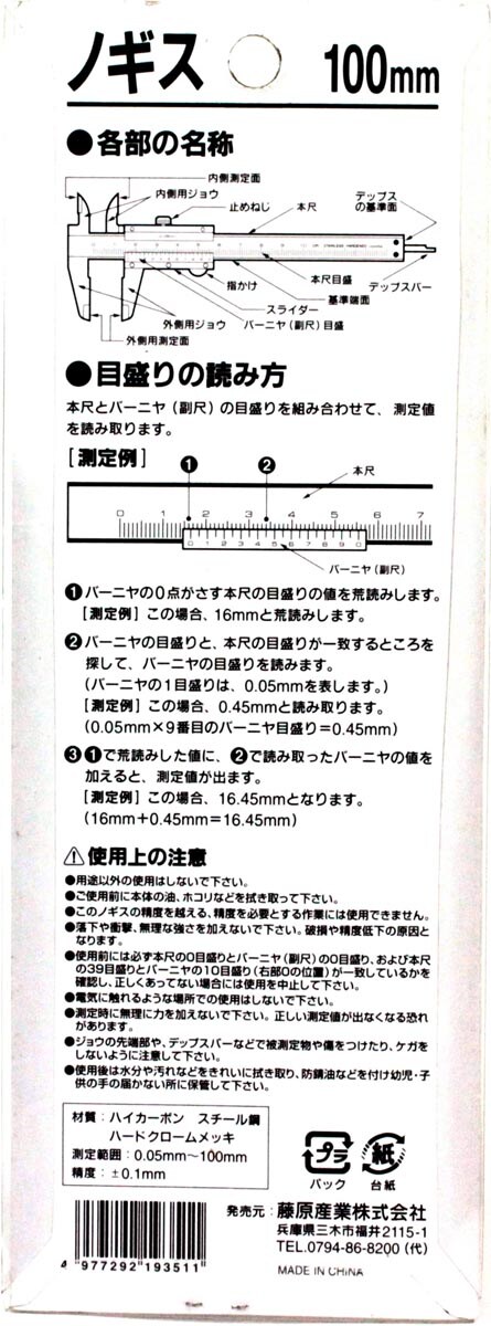 ・このノギスの精度を超える、精度を必要とする作業には使用できません。