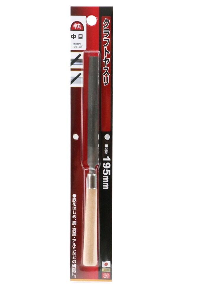 | ・形状:半丸 ・目の粗さ:中目 ・全長:約195mm ・鉄工用 ・柄付 ・材質:柄:木 |