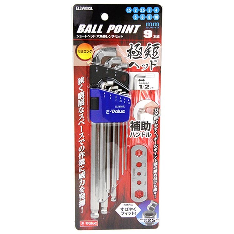E-Value ショートヘッド 六角棒レンチセット セミロング ELSW09SL 9本組 (1セット)