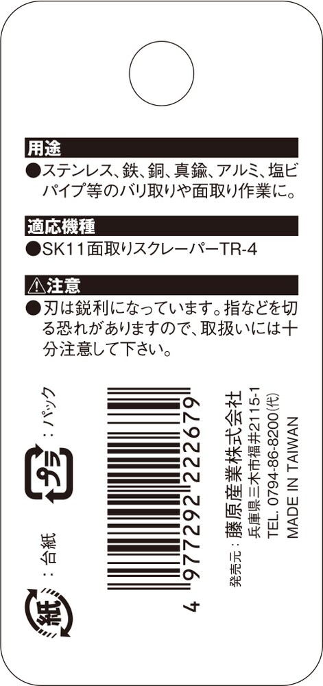 | 適合本体:SK11面取りスクレーパーTR-4 |