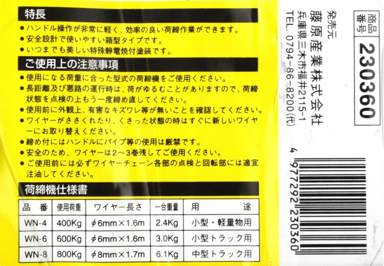 【SK11 ワイヤー荷締機 WN-6の商品詳細】