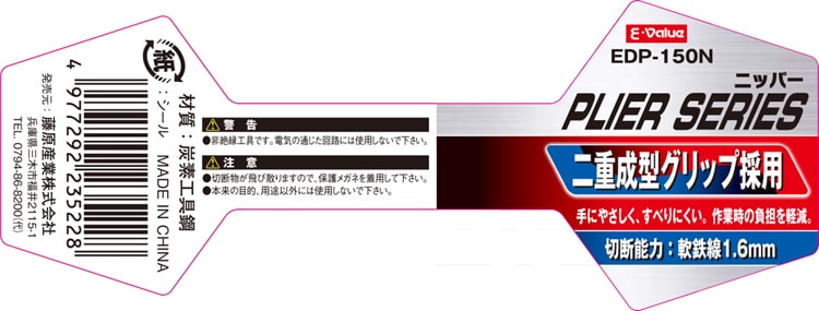 【E-Value ニッパー 成型グリップ EDP-150Nの商品詳細】