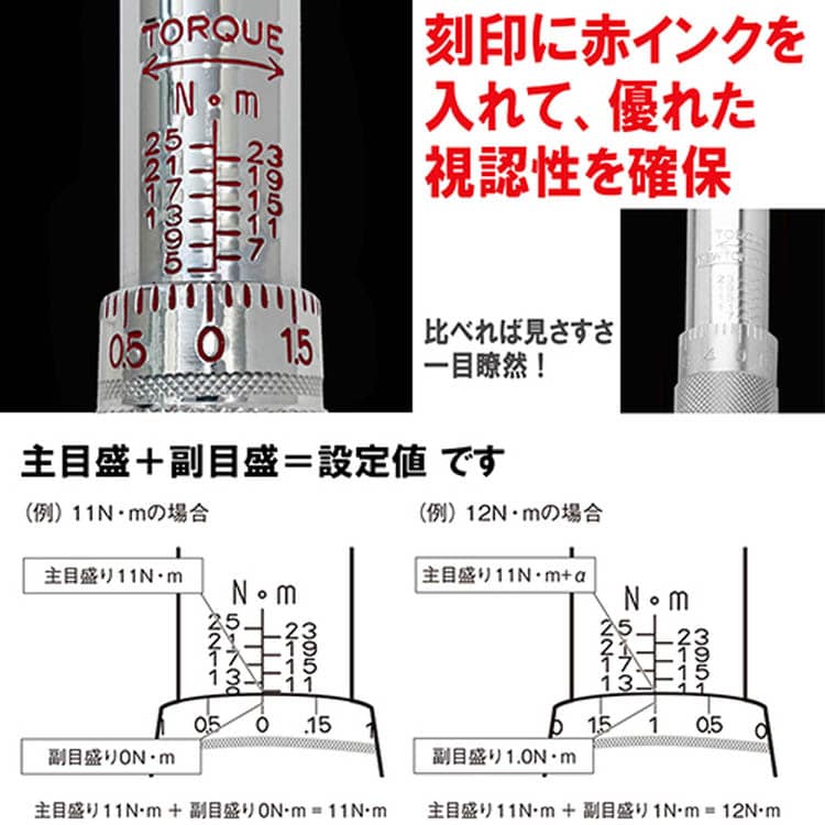 トルク値は主目盛り+副目盛りの合計になります。
