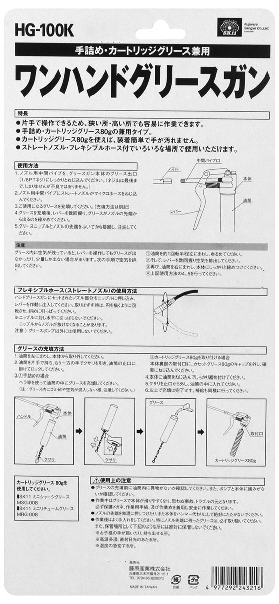SK11 ワンハンドグリースガン HG-100K (1個入)