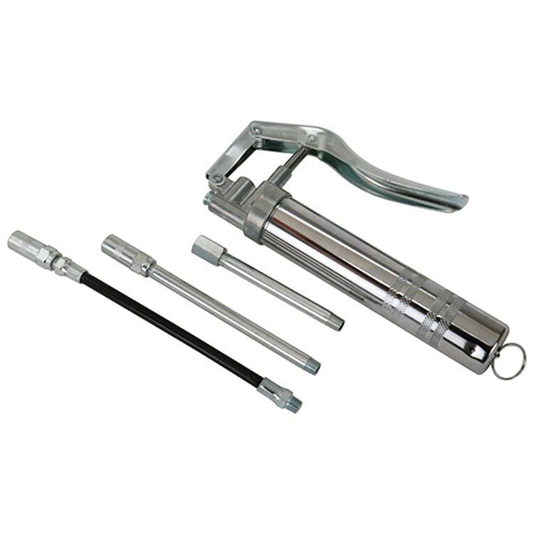 片手で操作が出来るので狭い場所での注油作業におすすめのグリースガンです。ストレートノズルとフレキシブルホースの2種類が付いているので、いろいろなの場所への注油が可能です。