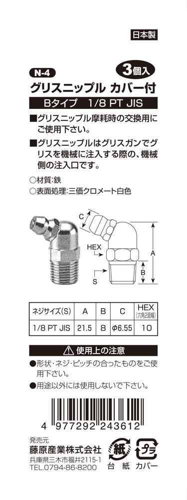 SK11 グリスニップル N-4 WB-110 (3個入)