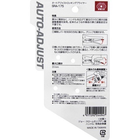 SK11 オートアジャスト ロッキングプライヤー SRA-175 (1個)