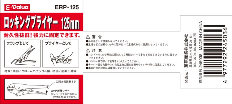 【E-Value ロッキングプライヤー 125mm ERP-125の商品詳細】