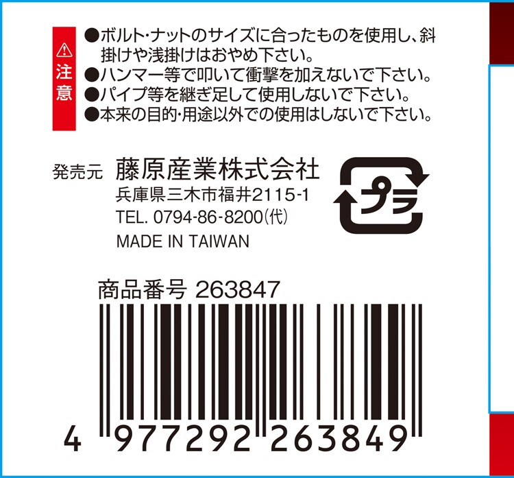 ・ボルト、ナットのサイズに合ったものを使用し斜掛けや浅掛けはおやめ下さい。