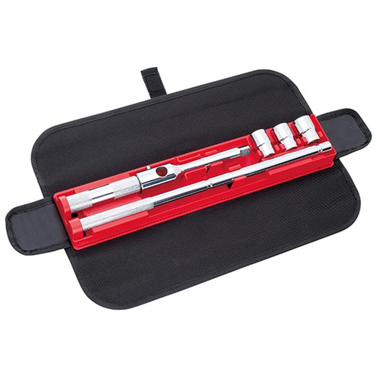 ●樹脂ホルダーに各工具が保持され、布製バックでコンパクトにまとめてあるので、携帯・車載に最適です。
