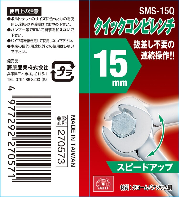 SK11 クイックコンビレンチ 15mm (1本)