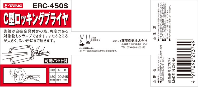 【E-Value C型ロッキングプライヤ パット付 ERC-450Sの商品詳細】