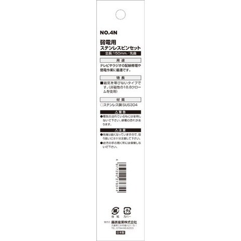 | ・用途:テレビやラジオの配線修理、基盤の細密作業や弱電作業 ・全長:150mm ・先端:先曲がり |
